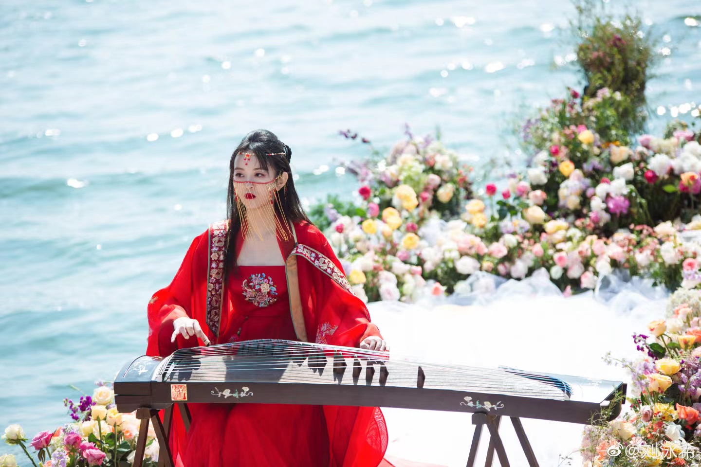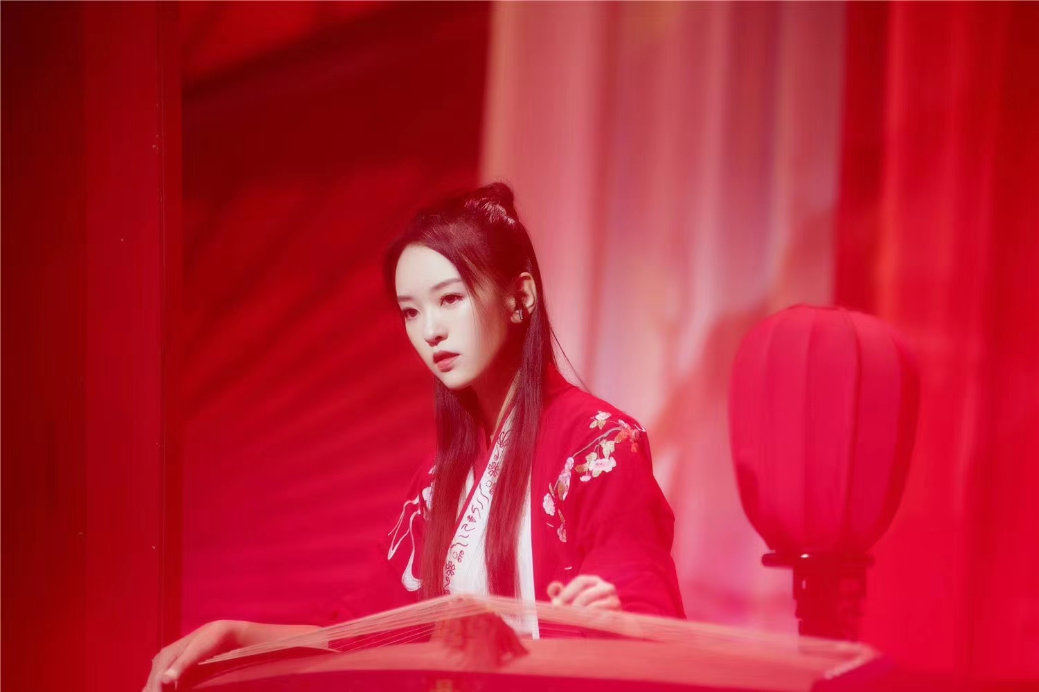 身着红衣的她,温婉动人,明媚灵动,仿佛误入凡尘的少女,古筝十级加持的她,古典与现代的结合,更有一种别样的美。