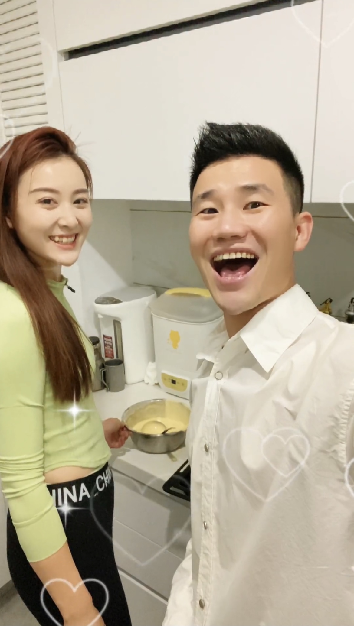 在近期的一条视频中,妻子在厨房做爱心蛋糕,谢孟伟向妻子索吻,当妻子真的吻向他的脸颊时,谢孟伟脸上的窃喜与幸福满溢屏幕,在文案中,谢孟伟也非常骄傲的称自己“家有贤妻”,这波恩爱秀得也是让网友直呼“甜度爆表”!