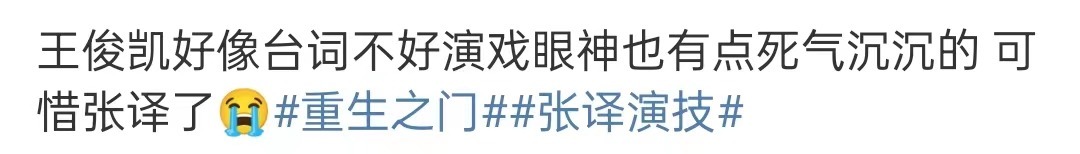 到了王俊凯这里就有了争议,很多观众称他脸部僵硬、表情死板,连眼神看起来都死气沉沉的,表演痕迹也明显得很。而使用配音不贴脸的问题无疑更是一个超级减分项,再加上身旁有张译作对比,看起来就更加惨烈了。