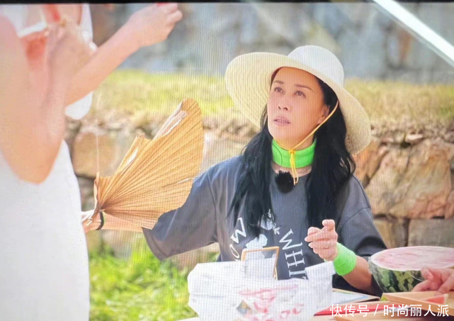 虽然是巨星,但是那英却表现得非常朴素,当天坐在路边卖西瓜,由于气温炎热,还特意戴上了农村常见的草帽遮阳,手持着蒲扇给自己扇风,俨然变身成了农妇,一点违和感也没有。