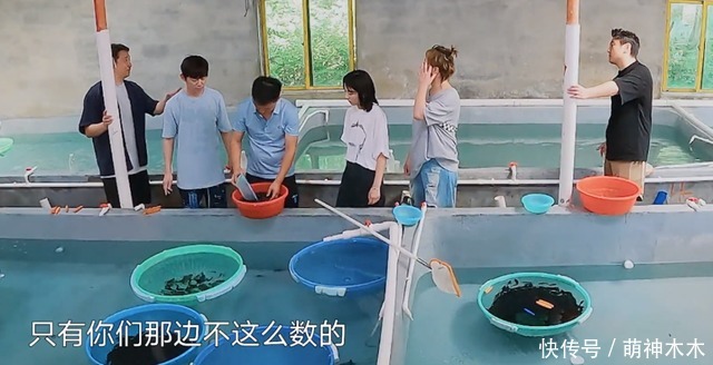 节目组安排常驻去数鱼苗,屋里没空调不通风仿佛桑拿房,沈腾眼神不好马丽数学不好,二人弯着腰流着汗好不容易把任务完成了,黄磊姗姗来迟,动了动脑子改变了一下方法,站着完成了任务,面对累得不行的沈腾马丽,他来了一句:“只有你们那边不(站着)这么数”。