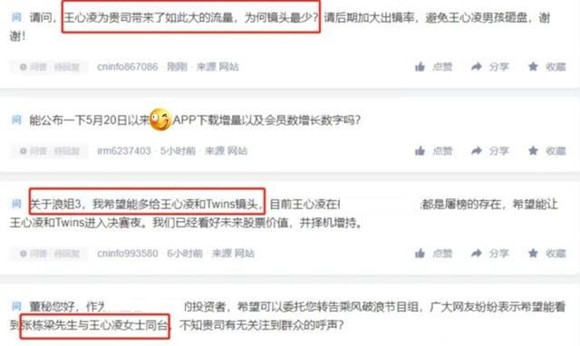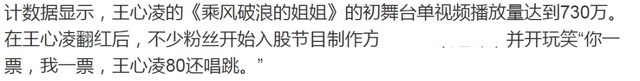 在王心凌翻红之后,随之而来的两大动态都和节目方有关,一是广大粉丝要求节目方增加王心凌的镜头,没想到,平台方迅速将节目封面更换成王心凌的单人照。二是粉丝们为了支持偶像,竟然直接购入节目方的股票。