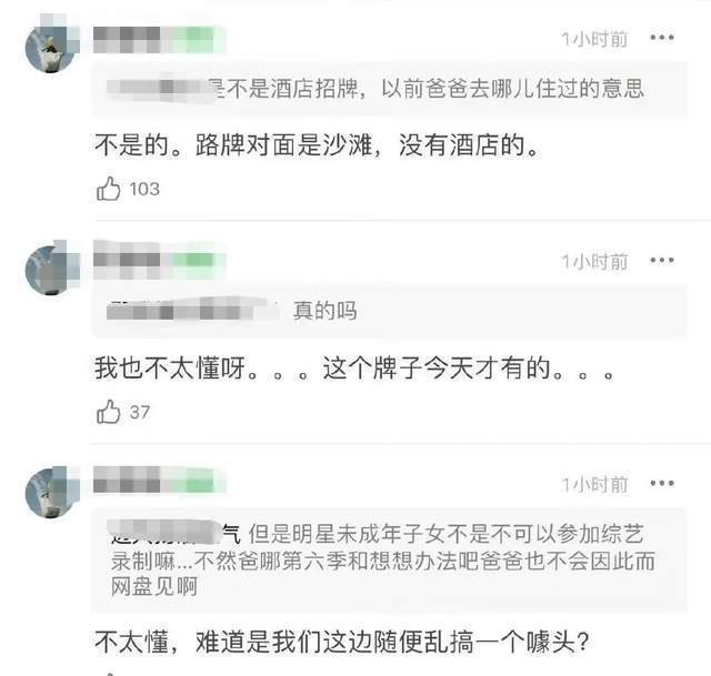 5月21日,有网友发帖称在家附近发现写有“爸爸去哪儿入住酒店”的路牌,路牌是崭新的,极有可能是刚做的。路牌对面是海边并没有酒店,只有一个挖掘机在人工搭建沙滩。据悉,此处从未录制过《爸爸去哪儿》。如果不是当地噱头的话,那就是时隔六年再出发,任谁都要感叹一句“爷青回”。