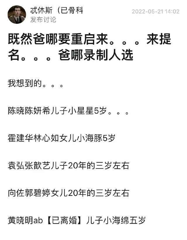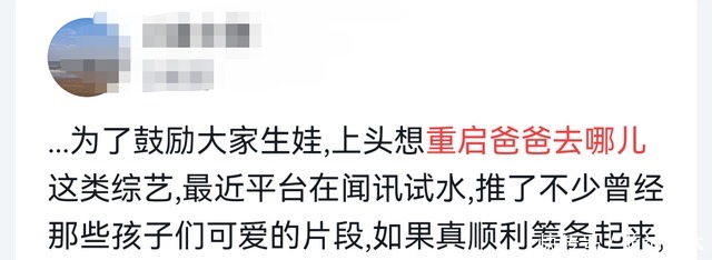节目重启固然会引起热议,但希望节目不要再出幺蛾子,认真做亲子综艺。