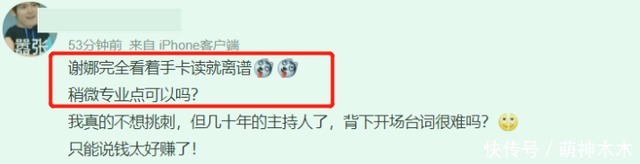 最后也希望谢娜能看到观众的意见,大家的要求不算高,也没让她追赶何炅齐平汪涵,至少先熟悉流程把手卡放下吧。