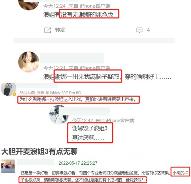 ——没错,谢娜又被吐槽了,有人说看到谢娜就担心她会突然笑出来,有人直言谢娜毁了《浪姐3》,甚至有人直接求“无娜版”。