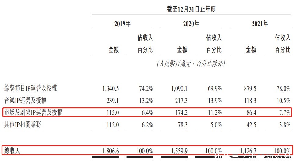但从单项收入来看,2019年至2021年电影及剧集IP运营及授权板块的营收由115百万下降至86.4百万,下降24.9%,这一数据依旧不理想。