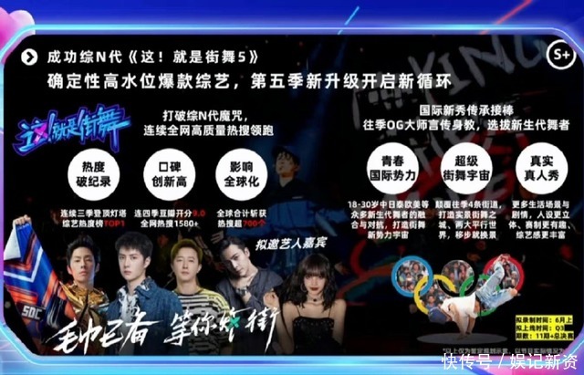 18日,官方组织召开了2022年的优酷云赏会,其中就提到了热门综艺《这!就是街舞5》。在介绍中就提到了“确定性高水位爆款综艺,第五季新升级开启新循环”,其中还提到了拟邀嘉宾阵容,分别为吴建豪、王一博、韩庚、陈伟霆、Lisa。