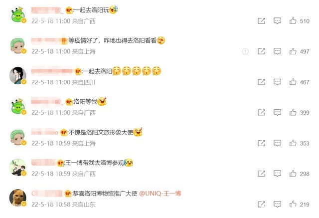 王一博出生于洛阳,对于洛阳必然有不一样的情怀。能够成为家乡博物馆的推广大使,宣传自己的家乡,为家乡的事业奋斗着,王一博不愧是一位大好青年。