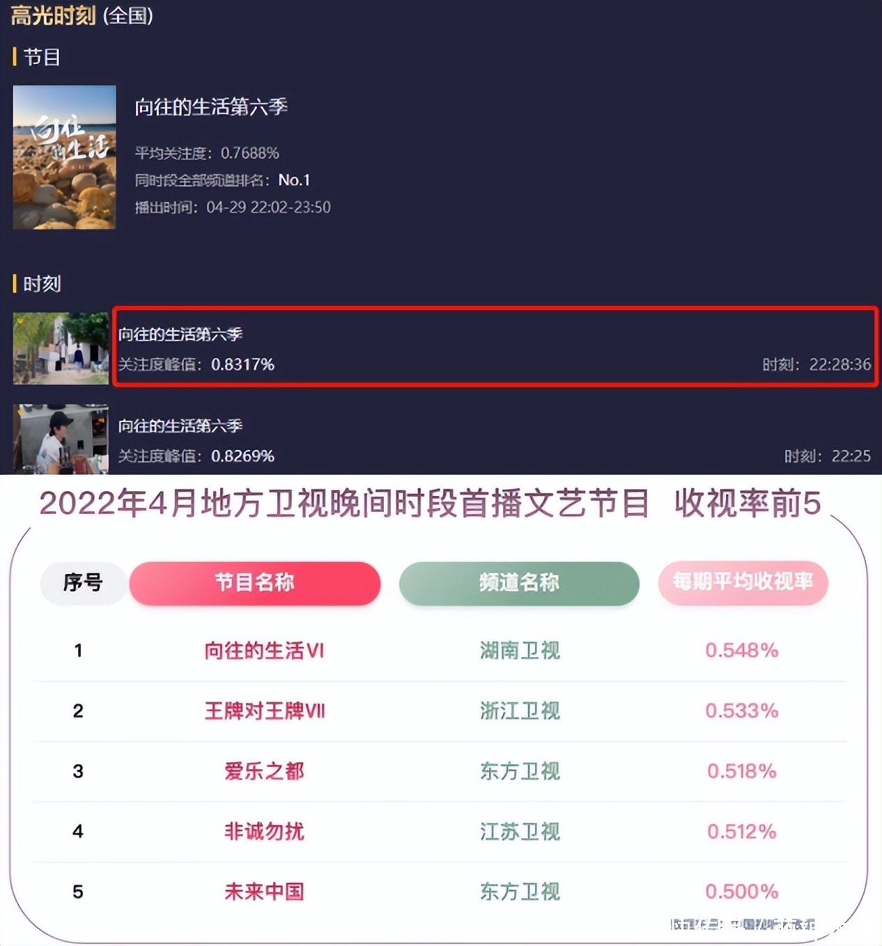 其实《向往》前几季收视就把问题反映得很明白了,现在能决定节目高度的还得是嘉宾,嘉宾表现要是“拉胯”,那口碑和收视就都要跌了。