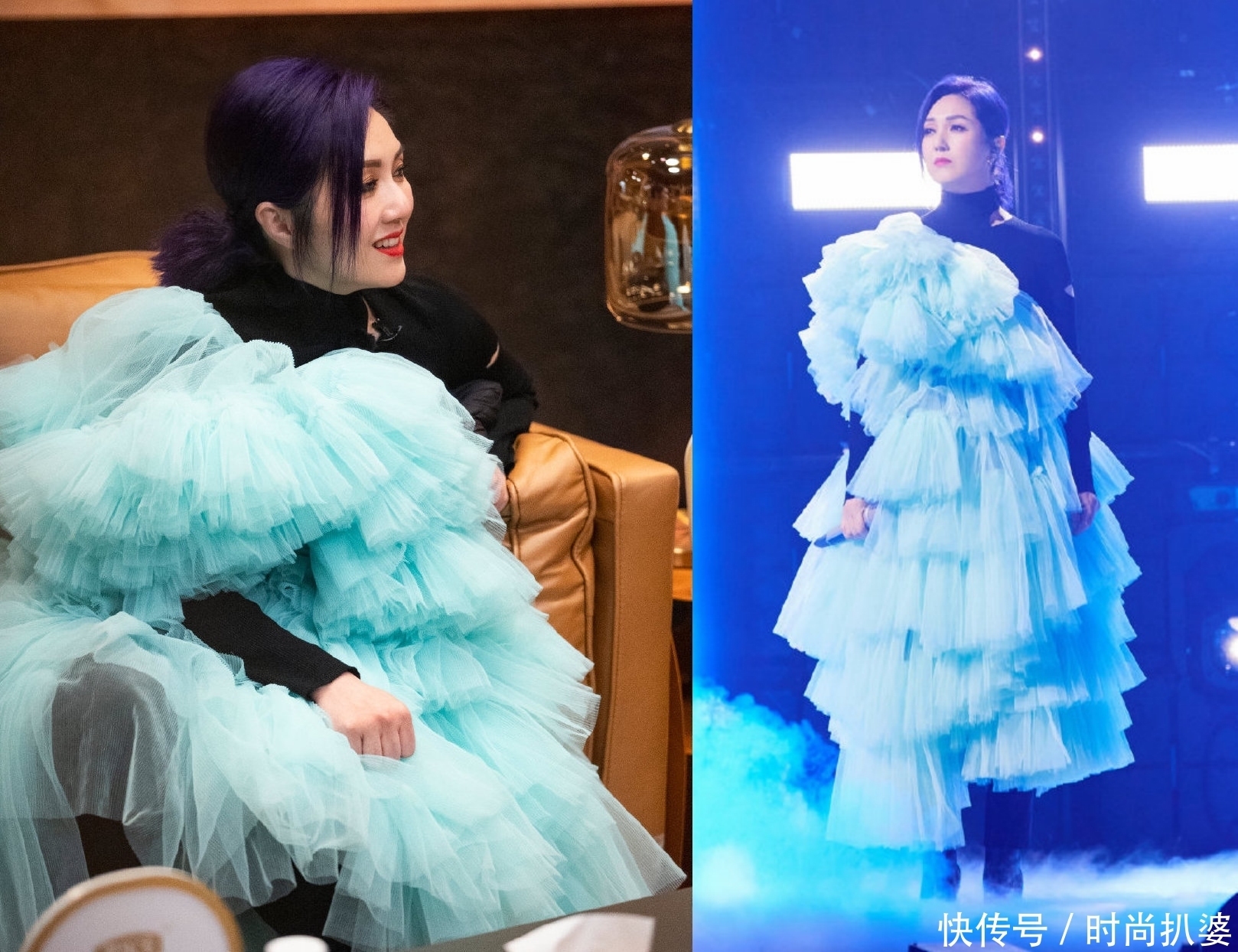 杨千嬅的造型也是保持个性,占地面积巨大的不对称的泡芙裙搭配深紫色的发型,是大家心目中的那个杨千嬅。