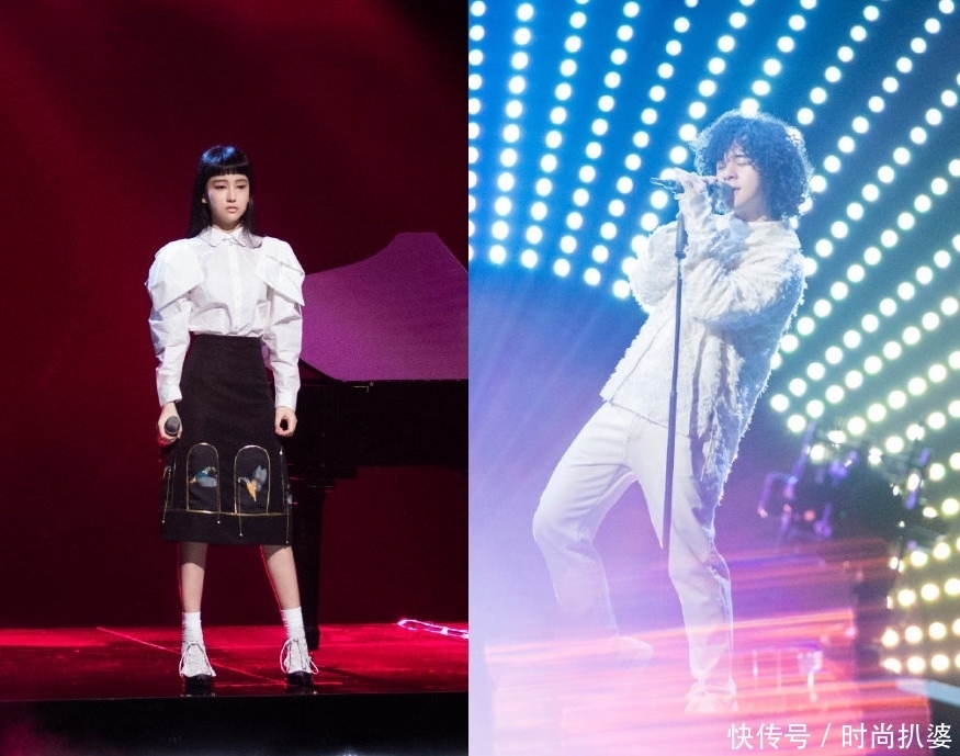 刘惜君和单依纯都选了修身的鱼尾裙,静静地站在舞台中央唱了一首抒情歌,在前辈们面前,这两位的晚辈都选择简约低调的造型,把更多的心思放在了歌曲的演绎上,毕竟是音乐综艺,歌声才是最具有说服力,最能打动人的。