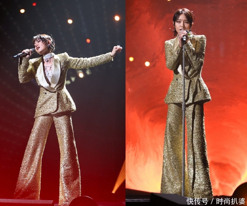 周笔畅也是圈内高定资源不错的选手,这次的首演她穿了一套来自Alexis Mabille 2021 Fall 高级定制金色西装套装,中性气质的笔笔和西装自然也是最搭的,金色的西装也很适合舞台,颇有几分复古港风舞台的感觉,这套高定和她的选曲也够搭~