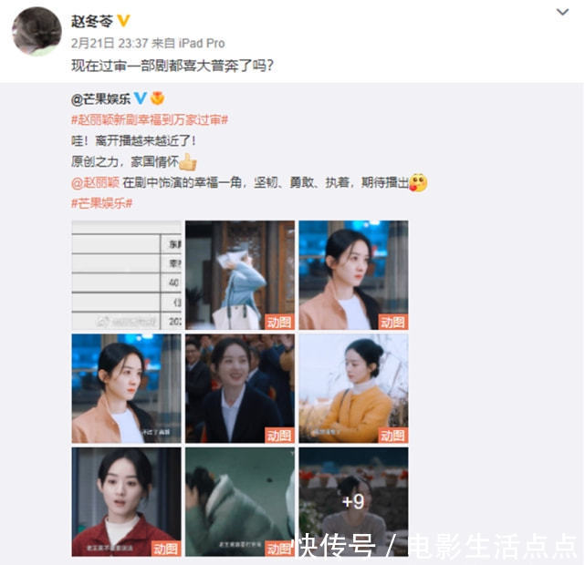 《幸福到万家》的编剧赵冬苓老师看到粉丝们如此热情期待,也在社交平台转发表示不解:“现在过审一部剧都喜大普奔了吗?”表面上看是粉丝们庆祝赵丽颖新剧过审,其实从侧面能够看出赵丽颖的号召力和影响力。