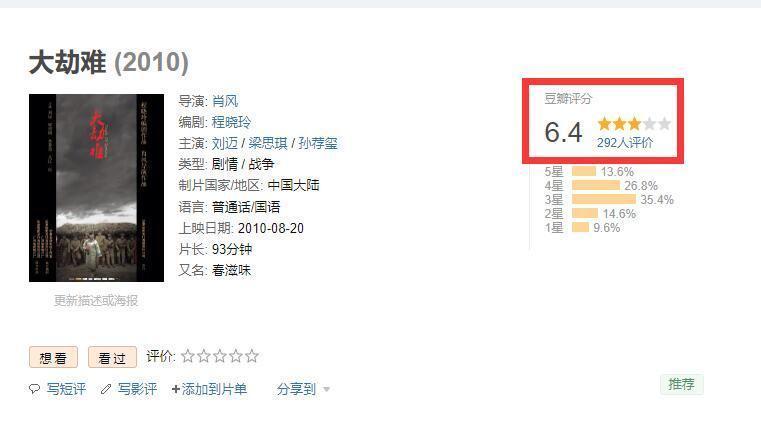 这部电影的名字叫做《大劫难》,可能很多人下意识去看了一下豆瓣上面的评分,一看这部电影才6.4的评分,便因此打起了退堂鼓,觉得这是一部垃圾电影,那你就想多了,实际上,这部电影的评分低是一方面,再加上豆瓣的评分,可信度可能远远没有我们想象的好,在我看来,这部电影起码能值个7分。