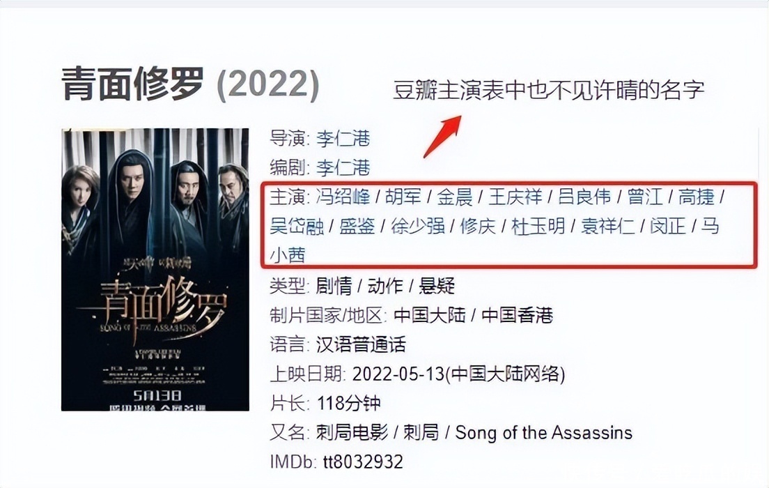 《青面修罗》在各大平台上映,这部电影原名是《刺局》,由李仁港执导,冯绍峰,胡军,许晴,金晨,王庆祥等主演的动作悬疑电影,这部电影早在2016年正式立项,制作成本高达2.2亿,在2017年5月开拍,时隔五年才正式上映。