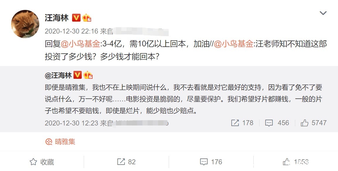 而且,此前知名编剧汪海林在回复网友中透露,《晴雅集》投资3到4亿,如果真是这个投资额,电影至少要10亿票房以上才能回本,《晴雅集》很可能和《泷夜曲》一起拍完,原本不出意外,两部电影加起来拿到10亿票房并不是难事,没想到早早画上句号。如果真像汪海林说的那样,郭敬明就赔的血本无归,那么新经典2423.2万元的投资收益也很难追讨了。这次“票房罗生门”,你们觉得真相会是怎样呢?