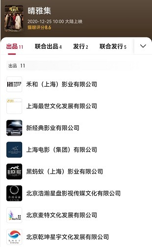 第二个问题,新经典影业为什么会起诉禾影业和?他们是什么关系?《晴雅集》不但演员阵容强大,制作也很庞大,有大量特效镜头,搭景、服化道等也都要消耗不少成本,所以电影共有11家出品公司和4家联合出品公司,这些公司都为电影提供投资,最终也都按照约定比例享受票房分红,也就是投资收益。