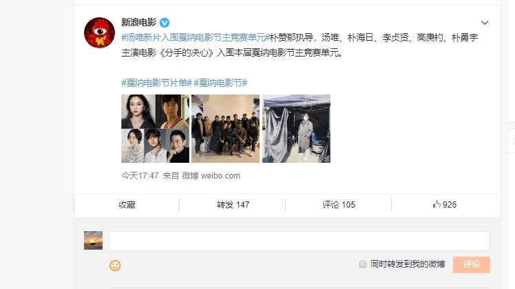 据悉在国外生活的汤唯最近饰演了一部新电影,并且该电影还入围了戛纳电影节,小伙伴们知道后也是想到意外和惊喜,没想到多年没有看到她竟然这么厉害,从媒体的曝光我们可以得知已经结婚生女的汤唯凭借新电影《分手的决心》入围了戛纳电影节主竞赛单元,有可能是五月上映令人超级期待。