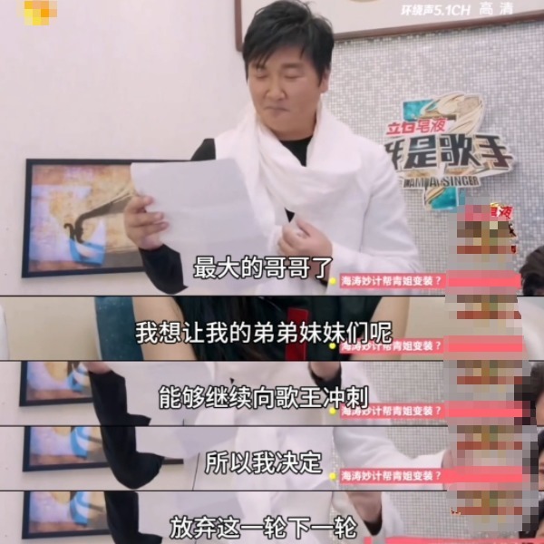 客观来讲,以孙楠的实力还是有可能竞争冠军的。然而,就在汪涵公布第一轮排名的时候,孙楠却突然宣布自己退赛,让所有人都措手不及。