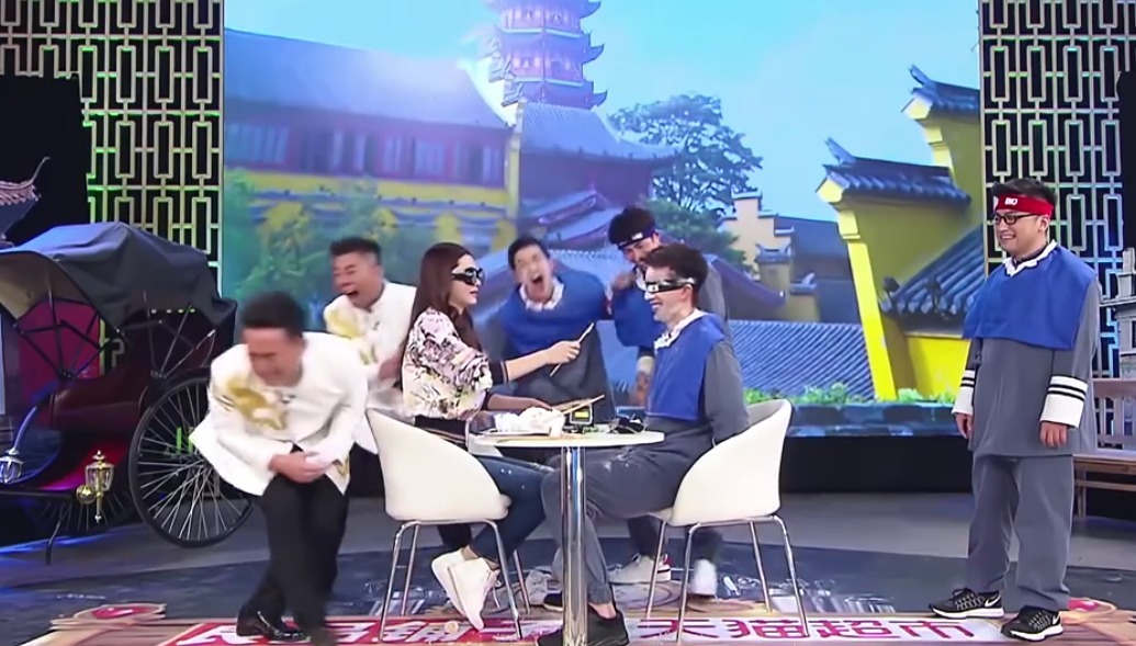 这还不算完,在接下来的一轮游戏中,几位嘉宾要戴着眼罩吃东西。