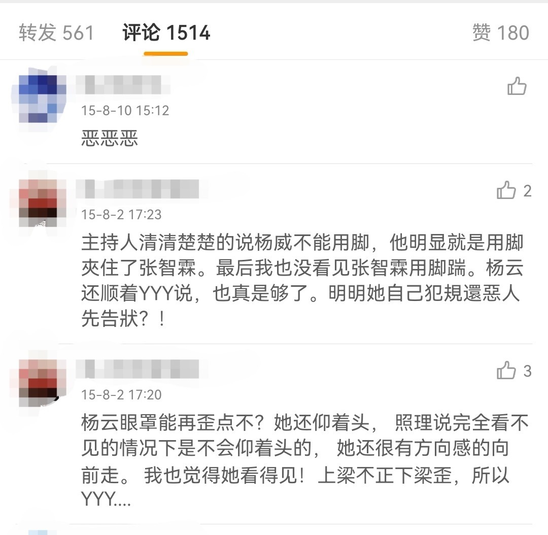 等到杨威上场跟张智霖对决时,更是让网友们气昏了头。