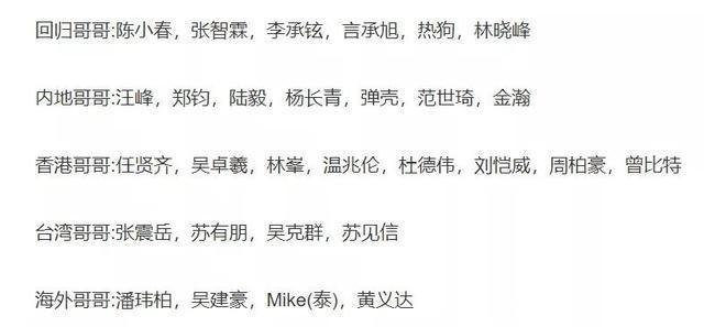 其中,爆料者名单中大湾区哥哥有十一人,但任贤齐是台湾艺人,是爆料者弄错了,因此大湾区哥哥只有十人。