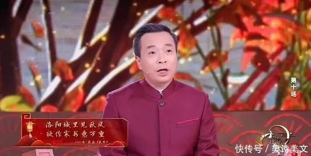 第二个是康震,送上的张籍的《秋思》,“洛阳城里见秋风,欲作家书意万重”,这是张籍的经典作品之一,这封家书惊艳了千年时光。第三个是蒙曼,他送上的是黄庭坚写给苏辙的《次元明韵寄子由》,“春风春雨花经眼,江北江南水拍天”蒙女神的话充满着诗意,她一向主张大家在诗词里找到快乐。第四个是杨雨,她送出的是张孝详的《念奴娇》,“素月分辉,明河共影,表里俱澄澈”和蒙曼一样,诗情画意,美得很!