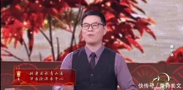 先送上开场诗的是王立群,王老师一向沉稳,这一次他抓住了家国情怀,送上了一首陆游的《示儿》。“王师北定中原日,家祭无忘告乃翁”,陆游的临终诗体现的正是咱们的民族之魂,不过在这么欢快的时候送上这样的诗有些沉重。