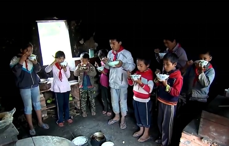 没有食堂,孩子们需要每周自己背着粮食来上学,下课后自己做饭。