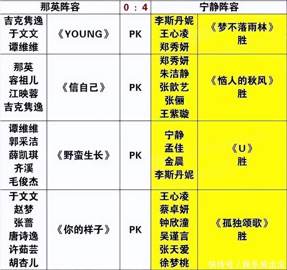 有网友爆料,《乘风破浪》第四次公演已经录制完毕,结果是那英组以0:4完败于宁静组。