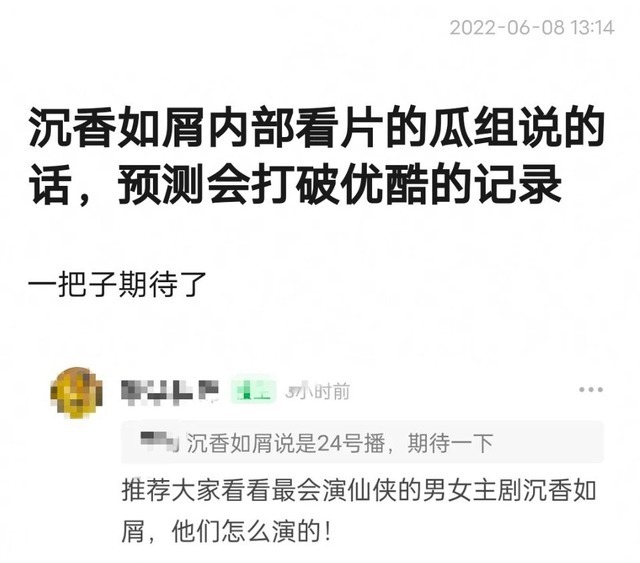 由于《沉香如屑》这部剧已经是拍完待映的状态,所以就已经有业内人士已经看过这部剧,而最近有消息就称《沉香如屑》内部看片的瓜组就预测这部剧会打破优酷的记录。