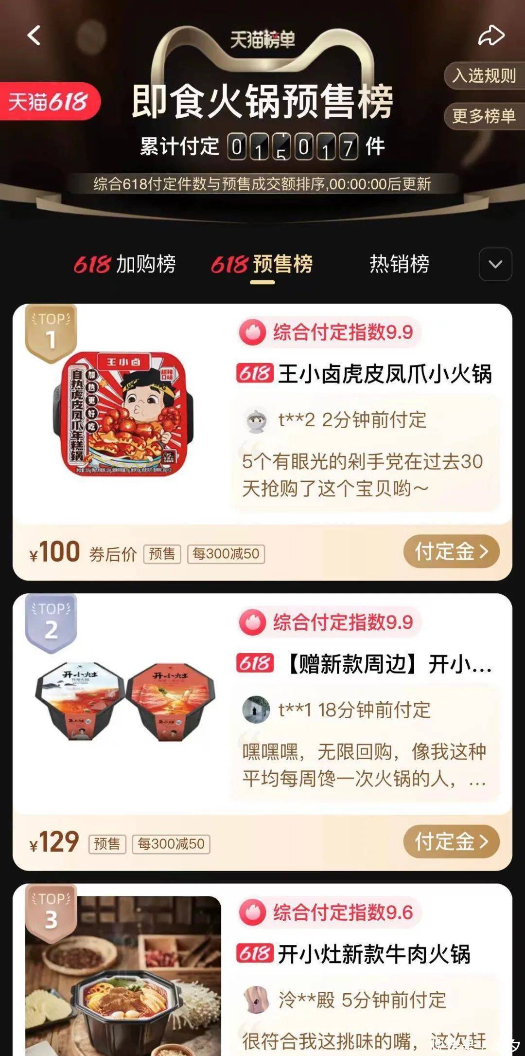 待产品在天猫正式上线,这群“干饭人”争相下单之余还通过朋友圈等方式奔走相告,为王小卤“带货”。功夫不负有心人,他们欣慰地看到,自己参与研发的产品成为天猫618即食火锅品类的“榜一”。