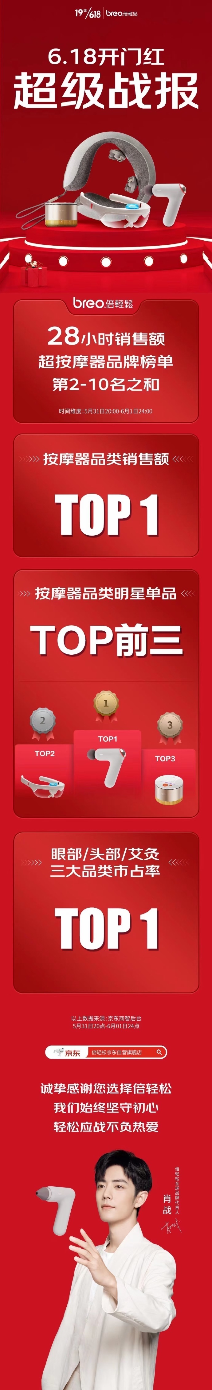 而在近日的一场直播中,我们更能直观地看分明:肖战到底有多厉害!短短半小时的直播,吸引了139万人观看,点赞过亿。3小时销售超去年31日官宣全天。有七个单项榜单夺冠。28小时销售额超过榜单上第2到第10名之和,按摩品类明星单品垄断前三,销售TOP1,三大品类市占率TOP1。讲真,品牌的这个战报,充斥着骄傲和自豪,还有点小得瑟,不过成绩确实牛气!让人服气!后来官宣的牛奶也卖得非常好,数据还未出,但是限购还卖空了,可见有多火爆。肖战的带货力度无论是高端高价,还是快销低价,都一如既往地强。粉丝们的购买力,也一如深沉的爱,滔滔不绝。