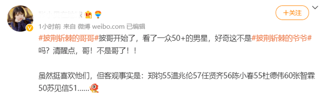 其实,之前的「浪姐妹」中的姐姐们年纪也不轻,大部分都有40以上了。不过,因为她们保养得很好,所以,她们依旧个个都很美艳。而男星们保养起来,就差了些,虽然年纪差不多,但从颜值上就差了许多。而许多哥哥的初舞台也是十分之油,但是哪怕如此,因为情怀,所以大家依旧是很喜欢他们。