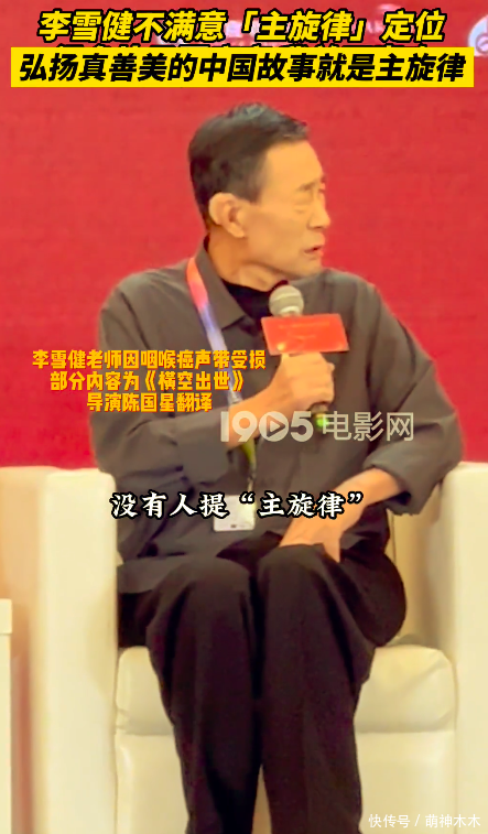在现场,由于鼻咽癌的影响,李雪健说话依旧非常吃力,吐字不清,但是在说到目前主旋律电影的定位时,李雪健老师还是情绪激动,很不满意现在主旋律电影的定位。在这一次拍《横空出世》以及早期李雪健拍《焦裕禄》的时候,根本没有人提过主旋律电影这个概念。