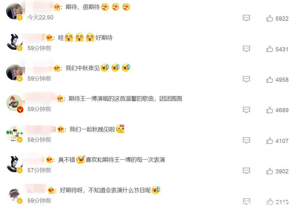 最后则是期待王一博在中秋晚会中的精彩表演,也祝福王一博能够工作顺利,给我们带来过多作品。