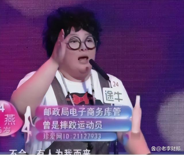 下面这位24号女嘉宾余燕,邮政局电子商务库管理,曾经是摔跤队运动员。这位女嘉宾因为体型比较胖,一直没有男嘉宾选她,在节目站了好几期。其实这位余燕是一位演员,毕业于南京炮兵学院,在北京电影学院进修,参演过好几部电视剧。