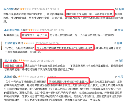 不过,《明日战记》的一星、二星差评也很统一,都统一给到了剧情方面,网友们直言:「剧情真是稀烂」、「整体故事一言难尽」、「剧情太拉了」、「内核还是警匪片」等等,而那句「用心做特效,用脚写剧本」可以说是该片的真实写照。