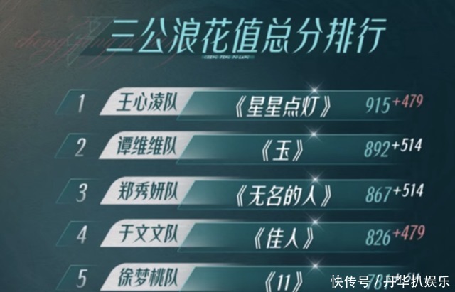 王心凌的队伍作为首发,本来挺吃亏的,但她们凭借精彩的节目和超高的人气,硬是拿到了915的浪花值,让候场的其余姐姐直呼“好高”!