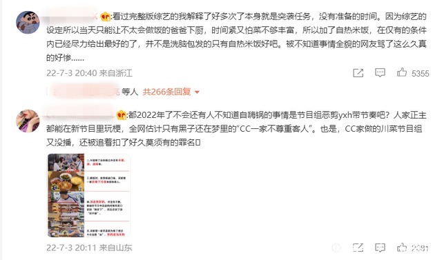 评论区的网友们也在帮忙解释称看完了整期节目并这是个突击任务,没有准备的时间,而且只能是让不会做饭的爸爸做饭,怕菜不够丰富,所以才加了自热米饭,并不是只有自热米饭已经是在在仅有的条件内已经尽力给出最好的了。