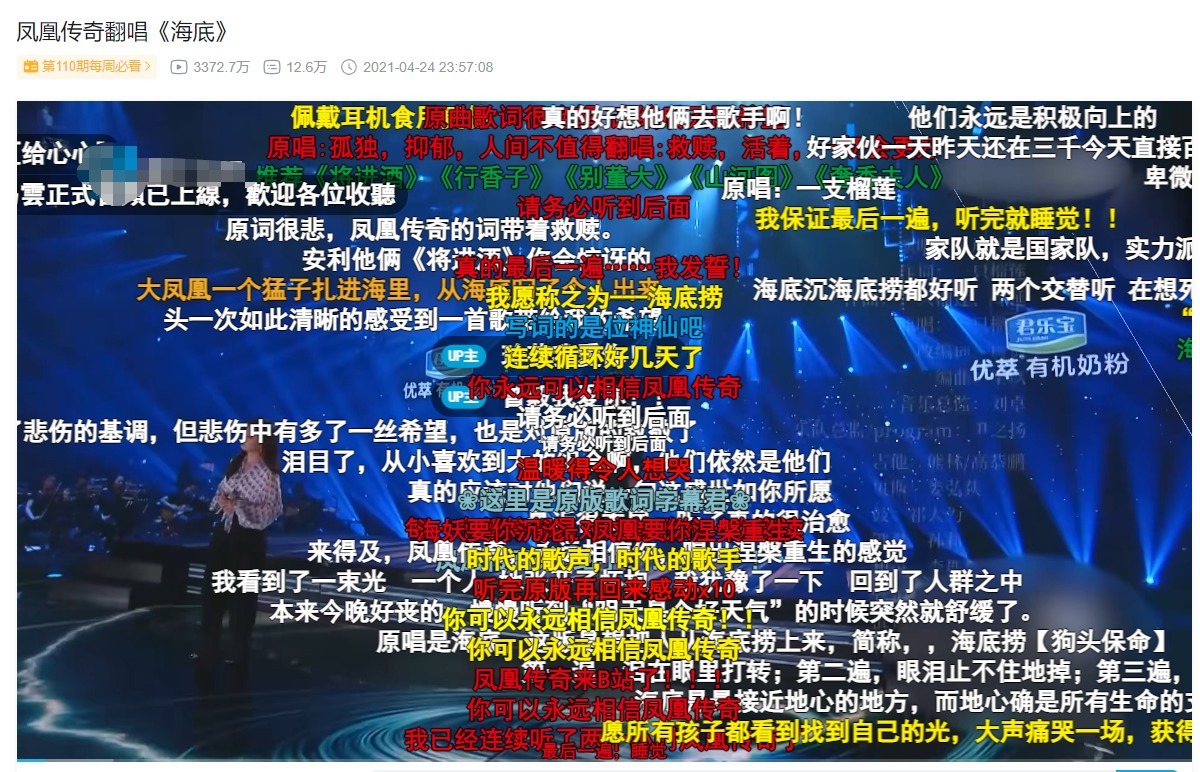 凤凰传奇版的《海底》,在这档节目上被批得一无是处,但在B站这个较为年轻化的舞台上,却被播放了上千万次,得到了上百万的点赞转发,甚至还一度霸榜了好几天。