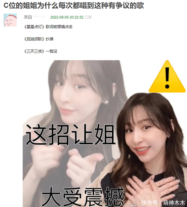 决赛还选了一首最近根本没法播出的歌让姐姐们表演,导致郑秀妍队的舞台直接“一剪没”,而一路总是赶上选曲争议的王心凌当然不会错过决赛这一次了啦。