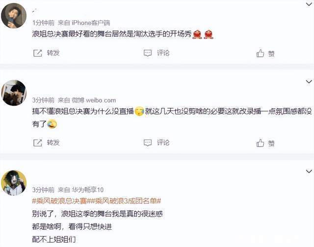 就《浪姐3》节目组这个“逆天”水准,能追到决赛的观众可谓是真爱了,嘴上吐槽再多,但还是会被决赛某些细节感动。