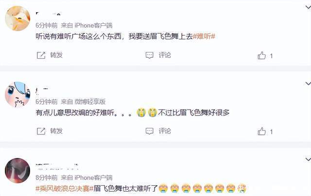 谭维维队表演经典舞曲《眉飞色舞》,不多说了,看看网友评价吧,大家很默契,直接给出两个字反馈——难听!