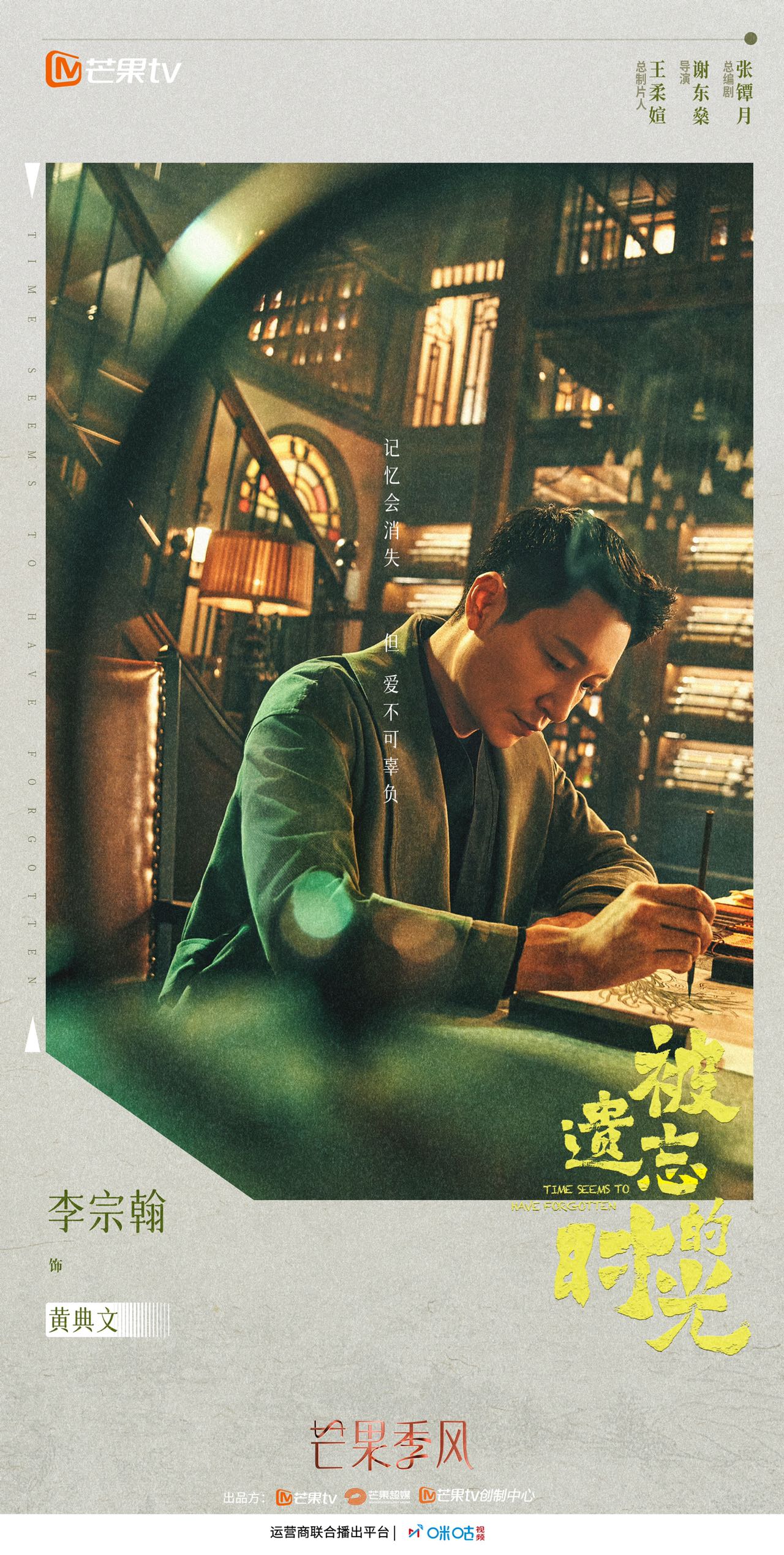 在另一部都市奇幻悬爱剧里,李宗翰则化身为生活的掌舵者。《被遗忘的时光》讲述了一个向客人提供“以情换愿”服务的地方,发生的几段笑泪交织的温情故事。李宗翰饰演典当行的老板黄典文,每当有来客时便以一句“你要问什么鄙人便答什么,客人请讲”开场。在民国风格围绕的神秘小屋里,黄典文举止温文尔雅,即使一身现代装也掩盖不了民国绅士感。原生家庭之痛、创业路上的辛酸、难以割舍的亲情等一连串的故事里,黄典文虽然看尽人生百态,但他自己也有着不为人知的秘密。