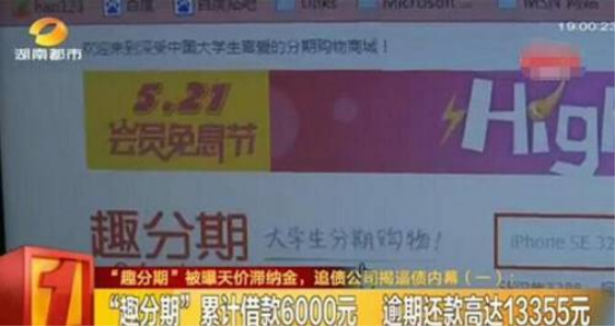 有一位长沙的大学生,在趣分期上借了6000元,逾期几个月后,最后竟然要还13355元。